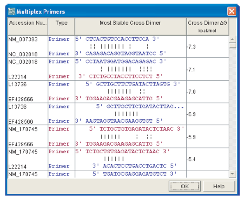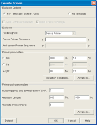 Primer Premier自动解释BLAST搜索结果,并避免那些区域设计与数据库具有显著交叉同源性的引物。这些同源区域在序列视图中被突出显示,并且在引物搜索期间被避免了。由于在扩展温度下存在模板结构,可能会阻碍引物的扩展。为了避免所有这些区域的模板自动折叠,在您指定的折叠温度下,程序使用专有算法来检查模板内可能的二级结构。在序列视图中,二级结构形成的区域下面用横线强调,并在设计引物时被避免。避免同源区域使得寡聚物高度特异性,避免模板结构提高设计引物的效率。
